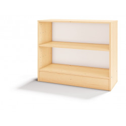 Mobile a giorno con 2 ripiani regolabili in MDF sp. 4 mm. Struttura realizzata in conglomerato nobilitato ligneo, sp. 18 mm, bordi in ABS, cl. E1, finitura betulla. Funzionale, comodo e sicuro, dà la possibilità di ordinare materiale didattico, oggetti personali dei bambini, zainetti, ecc. Dim. cm. 99x35x81h.
