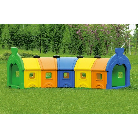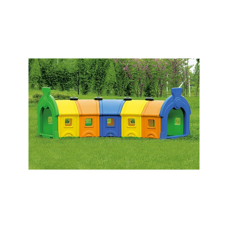 Wagon Toy è un gioco componibile costituito da elementi ad incastro modulare. Facile da comporre, è robusto ed affidabile, è in grado di supportare in TUTTA SICUREZZA, fino a 250 kg ovvero circa 10 bimbi. Disponibile in vivaci colori resistenti ai vari agenti atmosferici. Grazie al suo sicuro basamento di appoggio ad incastro, si può collocare su qualsiasi superficie garantendo l’incolumità del bambino durante il percorso, inoltre le finestrelle laterali, favoriscono una buona illuminazione all’interno dell’ampio tunnel. La sagoma di questi elementi consente di costruire percorsi a forme diverse. Composto da:
