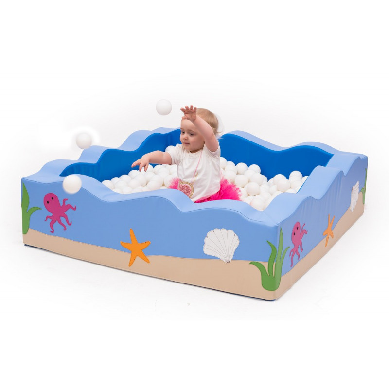 Realizzato con imbottitura in poliuretano espanso di alta densità e rivestita in PVC atossico, antibatterico, lavabile e sfoderabile. E' dotato di materassino di fondo per maggiore sicurezza durante il gioco. Bordi bassi facilitano entrata e uscita dal box. Inserendo le palline, può diventare una piscina. Alto livello di rifiniture con le cuciture doppie e fili elastici garantisce lunga durata nel tempo. Capienza circa 500 palline ø 65 mm, non incluse. Dim. cm 124x124x35h.