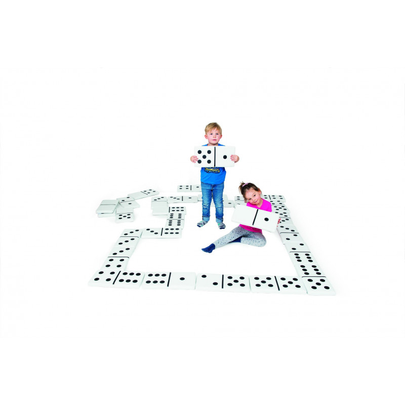 Set di 28 elementi rettangolari morbidi con puntini stampati in superficie, che riproduce il domino in grande formato. Gioco semplice, che stimola la mente e creatività dei bambini ed è sopratutto piacevole e divertente. Oltre i valori educativo come insegnare a pensare strategicamente o esercitare aritmetica, domino forma la mente per lavorare in gruppo. Realizzato con imbottitura in poliuretano espanso di alta densità (25 kg/mc) e rivestite in similpelle lavabile, atossico, antibatterico e piacevole al tatto. Fondo antiscivolo limita gli spostamenti durante il gioco. Doppie cuciture con fili elastici danno una maggiore resistenza, anche nell'uso frequente. Dimensioni elemento singolo cm