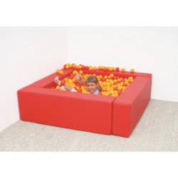Realizzata con imbottitura in poliuretano espanso di densità 25 kg/mc e rivestita in morbido PVC colorato, atossico, antibatterico e lavabile. Composta da 4 elementi di spessore 20 cm, uniti tra loro da strisce di velcro che garantiscono stabilità e telo di fondo. E' luogo ideale per lo svago, riempita di palline colorate aumenta il divertimento. Le sue dimensioni permettono a più bambini di giocare contemporaneamente. Può contenere fino a 2000 palline ø 65 mm, non incluse. Dim. cm 140x140x41h.