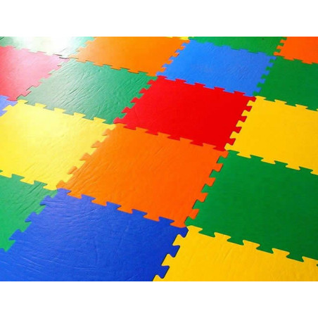 Non-toxic, fireproof, durable, hygienic, washable, heat insulating, interlocking self-laying. Made of high density EVA material (min. 180kg/m3), completely closed cell, not in contact with each other and extremely fine to better absorb shocks. Elastic, non-toxic (in compliance with the law on the use of foodstuffs), antibacterial (not attacked by microbial degradation, refractory to oils and solvents), resistant to tearing, lacerations and UV rays. Pleasant in contact with the skin, it does not disintegrate, does not deform and does not age (impervious to humidity). It does not require maintenance and cleaning is simple and fast, just water may be enough. CE certified by ISTITUTO GIORDANO according to the 88/378/EEC "Safety of toys" regulation. MADE IN ITALY. GUARANTEED FOR 10 YEARS. Size cm 48.5x48.5x1.