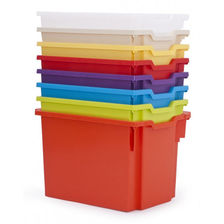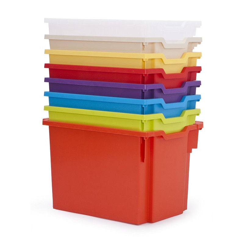 Una vasta gamma di contenitori completi di guide, che si adattano alla Serie Feria, permettendo una migliore organizzazione dello spazio di conservazione, per mantenere facilmente in ordine i piccoli oggetti e risparmiare tempo per la loro ricerca. I prodotti sono fatti di materiali appositamente selezionati per qualità e sicurezza. Affidabilità e durevolezza garantisce la commistione di polipropilene aggiunto al 20% di talco, dal quale vengono prodotti contenitori Gratnells. Sono ignifughi, resistente alla maggior parte dei detergenti e altre sostanze chimiche usate nelle scuole. Inoltre, il processo di fabbricazione della composizione fibrosa del prodotto è stato integrato con materiale anti-statico, che riduce l'attrazione di polvere. I contenitori vuoti possono essere impilati, risparmiando così superficie utile. Dim. cm 31x42,7x30h.