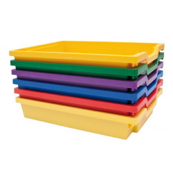 Una vasta gamma di contenitori completi di guide, che si adattano alla Serie Feria, permettendo una migliore organizzazione dello spazio di conservazione, per mantenere facilmente in ordine i piccoli oggetti e risparmiare tempo per la loro ricerca. I prodotti sono fatti di materiali appositamente selezionati per qualità e sicurezza. Affidabilità e durevolezza garantisce la commistione di polipropilene aggiunto al 20% di talco, dal quale vengono prodotti contenitori Gratnells. Sono ignifughi, resistente alla maggior parte dei detergenti e altre sostanze chimiche usate nelle scuole. Inoltre, il processo di fabbricazione della composizione fibrosa del prodotto è stato integrato con materiale anti-statico, che riduce l'attrazione di polvere. I contenitori vuoti possono essere impilati, risparmiando così superficie utile. Dim. cm 31x42,7x7,5h.