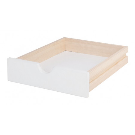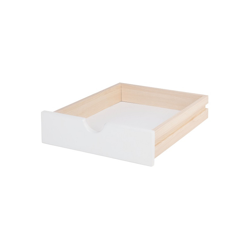 Realizzato in MDF classe E1, spessore 15 mm. Bordi e spigoli arrotondati. Frontale laccato con vernici ecocompatibili ed atossiche. Ritaglio sul frontale funge da maniglia e foro di aerazione. Completo di guide. Dim. cm 34x40x9h.