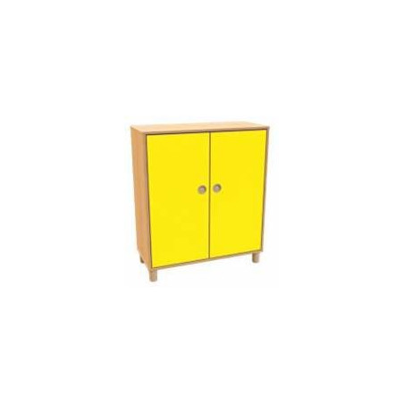 Mobile ad ante con 2 ripiani interni regolabili. Realizzato in legno agglomerato ecologico nobilitato in classe E1 di spessore 18 mm, ignifugo cl. 2, finitura betulla con bordature perimetrali in ABS multirigato a profili e spigoli arrotondati. Schienale in MDF di spessore 5 mm, classe E1, laminato magnolia su entrambe le facce. Le ante sono dotate di maniglia ad incasso e cerniere con apertura a 110°. Alla base piedi cilindrici in massello di faggio con puntale in plastica, per facilitare la pulizia. Tutti i componenti sono riciclabili al 100%. Ante disponibili nei colori pastello: giallo, arancio, verde, azzurro, lampone, lilla. Dim. cm 90x40x106h.