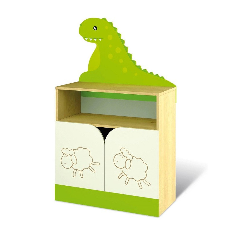 Struttura in conglomerato nobilitato ligneo, sp. 18 mm. cl. E1, finitura betulla. Spigoli arrotondati e bordi in profilo ABS antiurto. Ante e decoro in MDF laminato, sp. 12 mm, sagomate e pantografate. Schienale rifinito con MDF laminato bianco, sp. 4 mm e avvitato alla struttura. Spigoli arrotondati. Disponibile anche con i piedini.