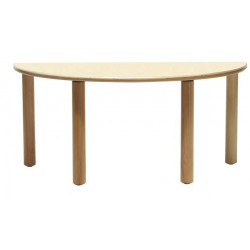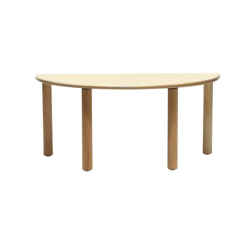Piano in multistrato di betulla di sp. 24 mm, placcato con laminato plastico di sp. 0,9 mm in finitura opaca, antiriflesso, lavabile e antigraffio. Bordi ed angoli arrotondati, lucidati al naturale. Gambe cilindriche in legno massello di faggio, diam 60 mm, con gommini antisdrucciolo e antiestrazione. Colori disponibili: magnolia, blu, azzurro pastello, giallo, giallo pastello, rosso, arancio pastello, verde e verde pastello. Dim. cm 120x46h.