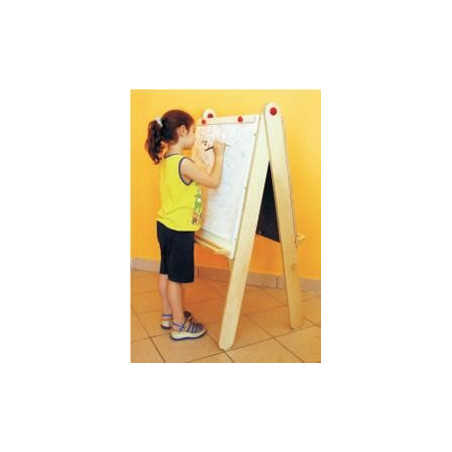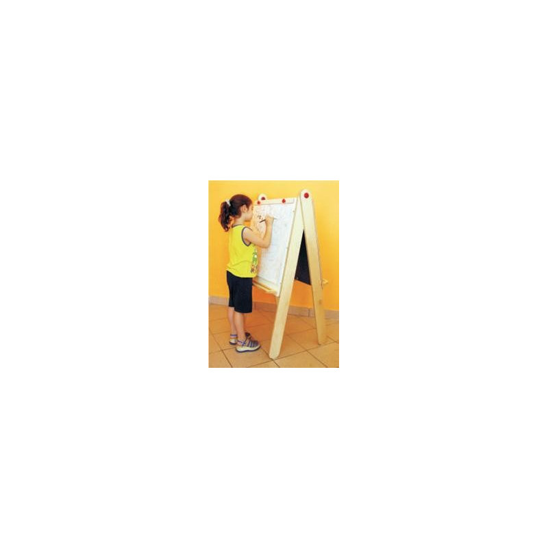 Realizzato interamente in legno multistrato di betulla lucidato al naturale con bordature a profilo e spigoli arrotondati. Completo di mensoline portacolori. Dim. cm 80x140h. Conforme alle norme armonizzate UNI EN 71/1, UNI EN 71/2, UNI EN 71/3.